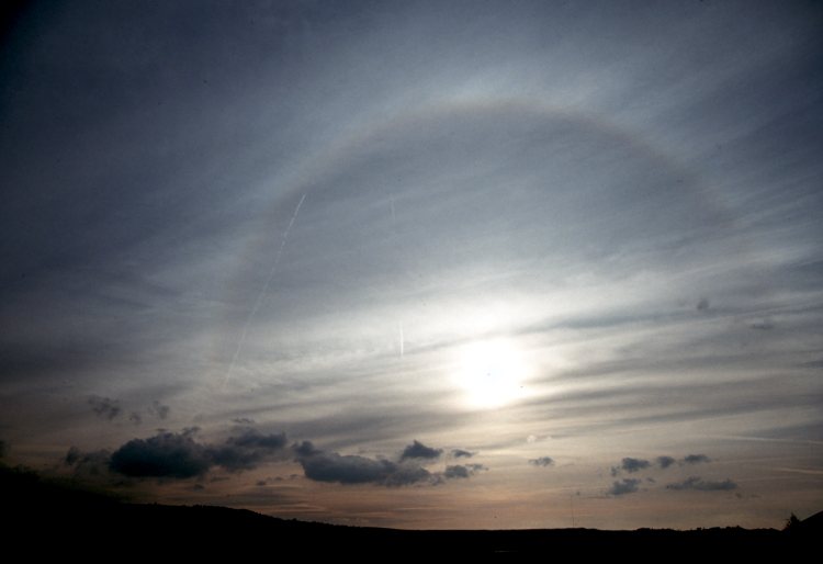 22° - Halo; Cirrostratus fibratus, Cumulus fractus (Cs fib, Cu fra)
